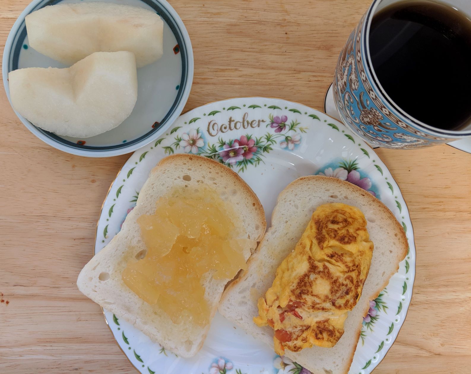トマトチーズオムレツとマーマレードのトースト |